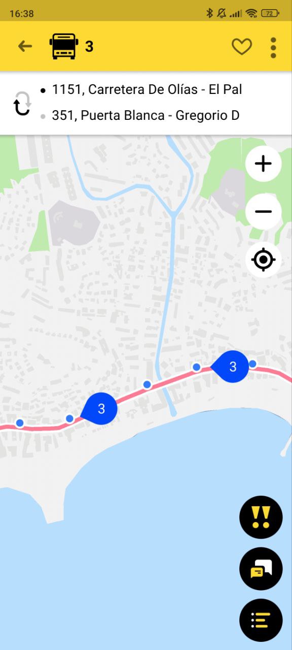 - Modo de conductor de la aplicación, para transmitir datos geográficos de los autobuses directamente al servidor.