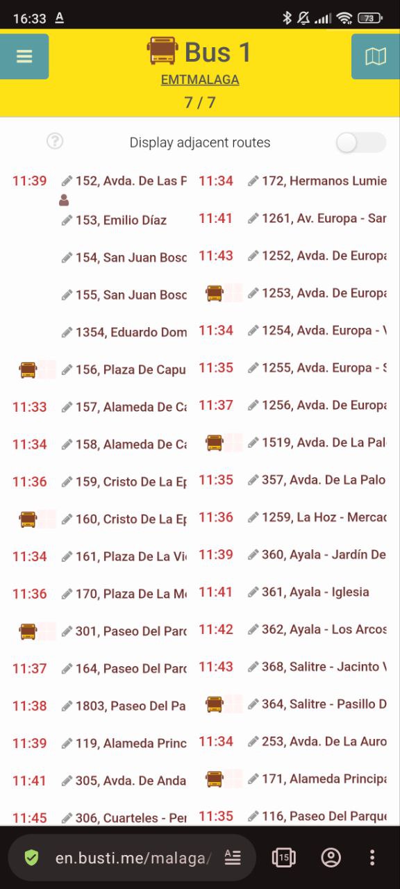 Bustime es un servicio conveniente que le ayuda a seguir el movimiento del transporte público en tiempo real. Proporcionamos información precisa sobre la ubicación de autobuses, tranvías y otros tipos de transporte para que su desplazamiento sea más cómodo y predecible.