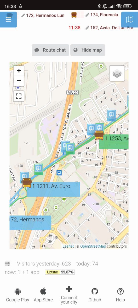 Nuestro servicio opera en diferentes países del mundo. Proporcionamos datos precisos sobre el movimiento del transporte urbano, ayudando a miles de usuarios a ahorrar tiempo y evitar largas esperas en las paradas.